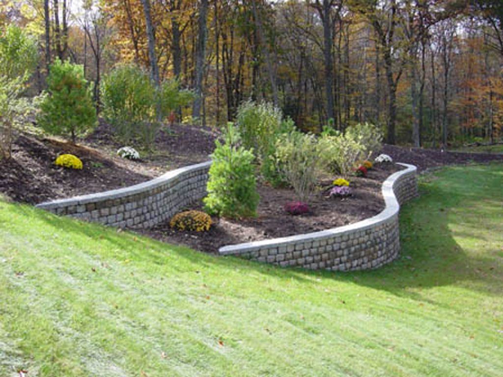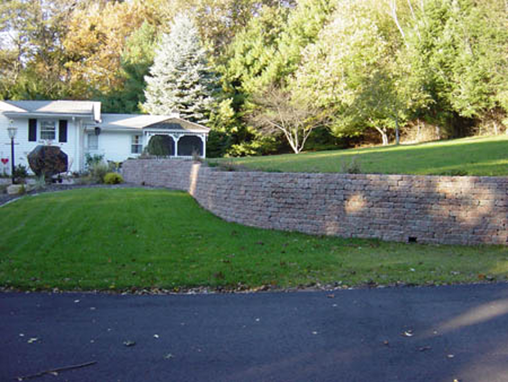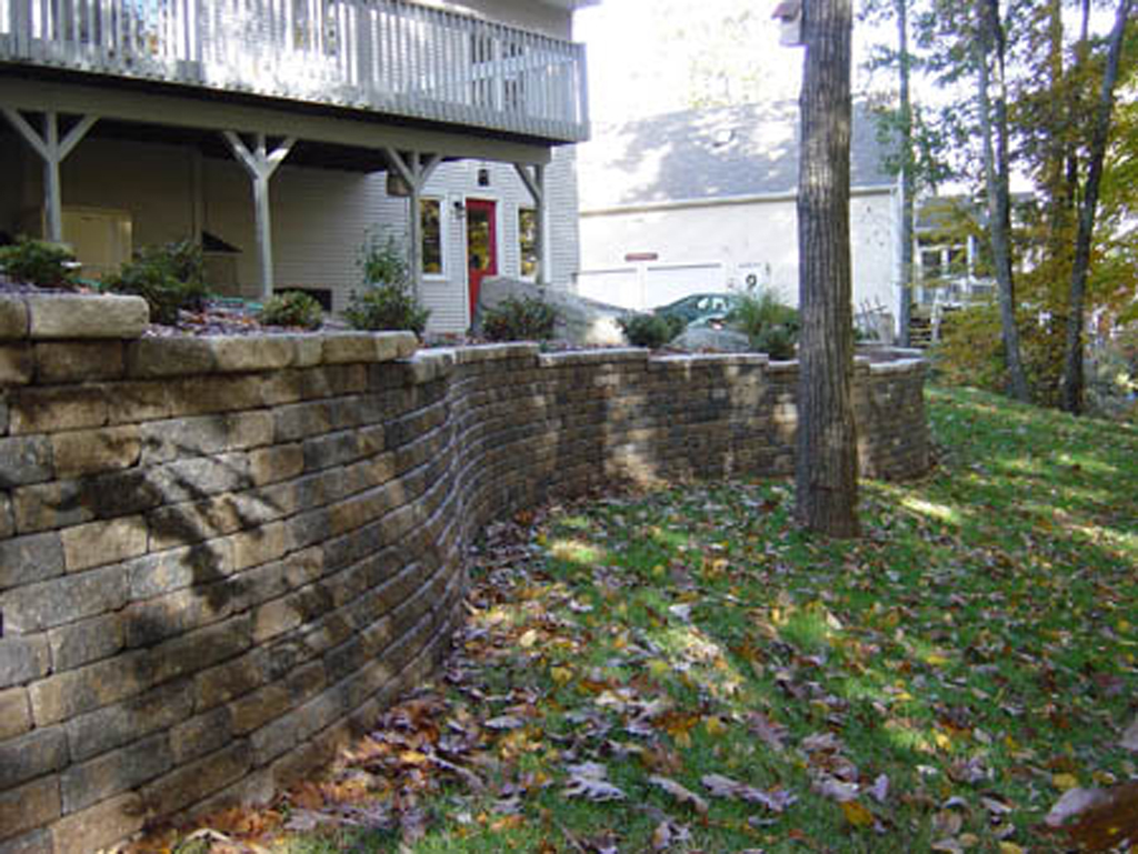 One of the most common walls constructed are the interlocking concrete retaining wall systems. These walls are engineered to work well to take up differences in elevation change within your landscape.