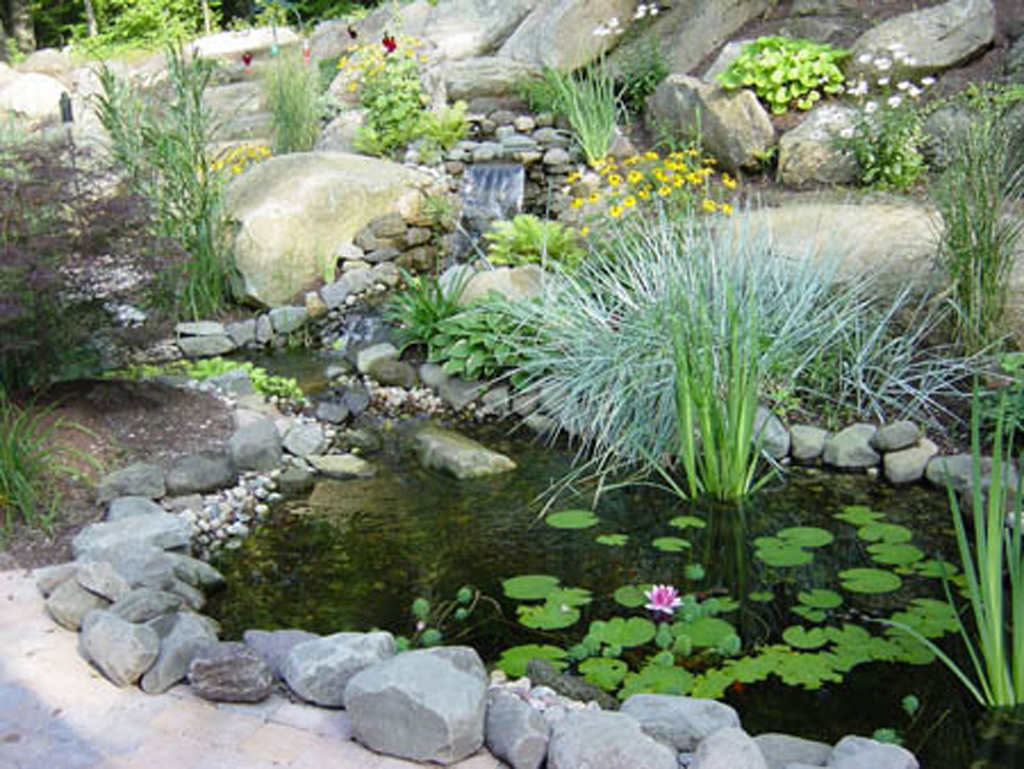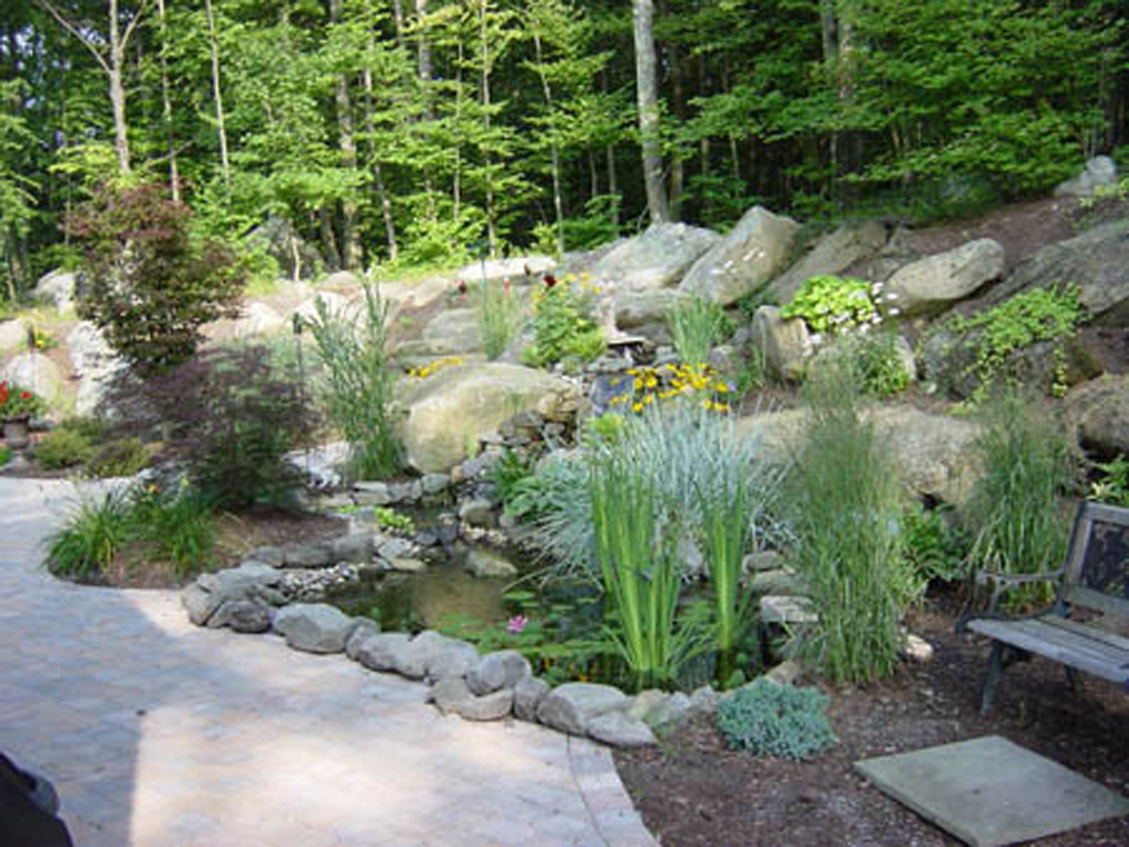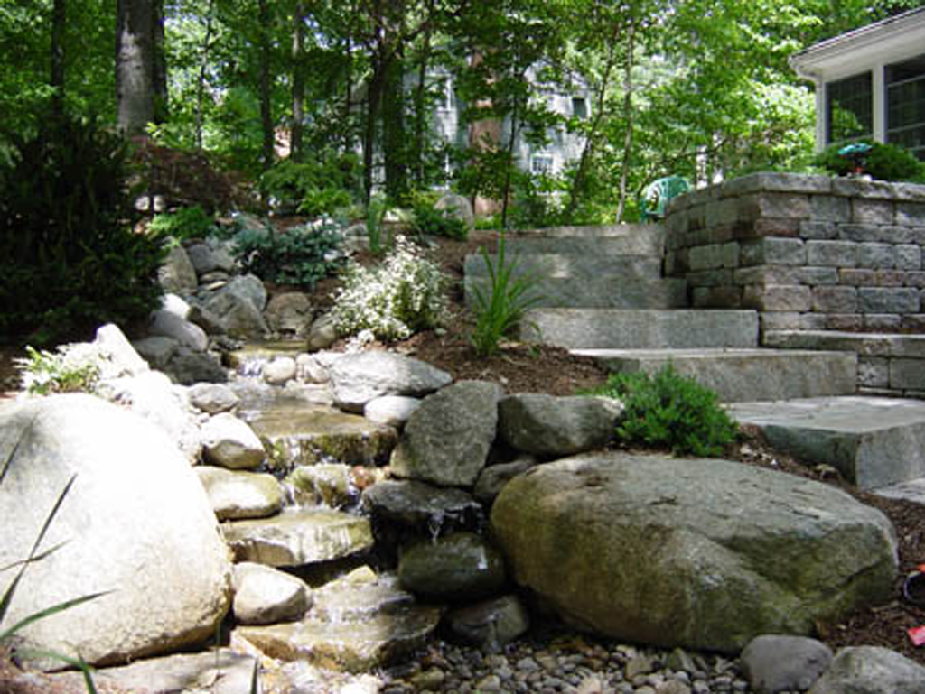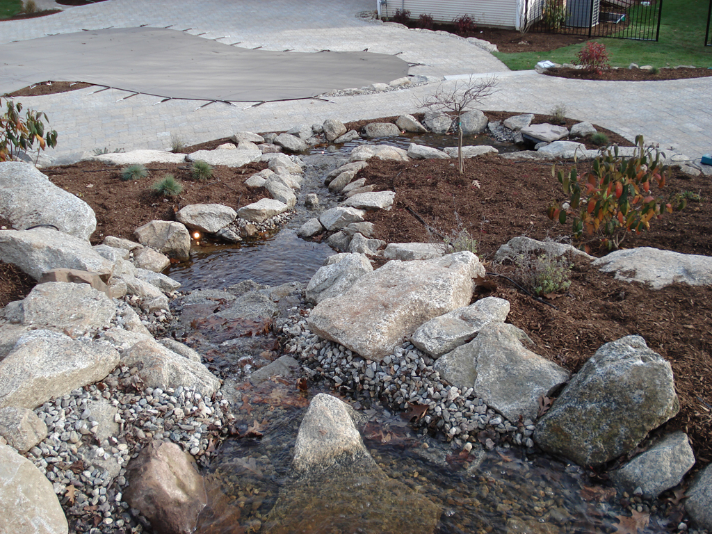 In addition to a professionally installed hardscape, the landscape of the yard including plantings, trees, perennials, good quality topsoil and mulch and sod for the lawn bring the project together.